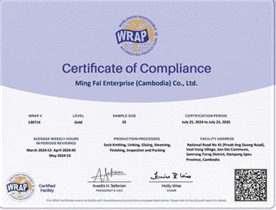 祝賀Ming Fai Enterprise (Cambodia) Co., Ltd.柬埔寨工廠2024年快速通過WRAP認證